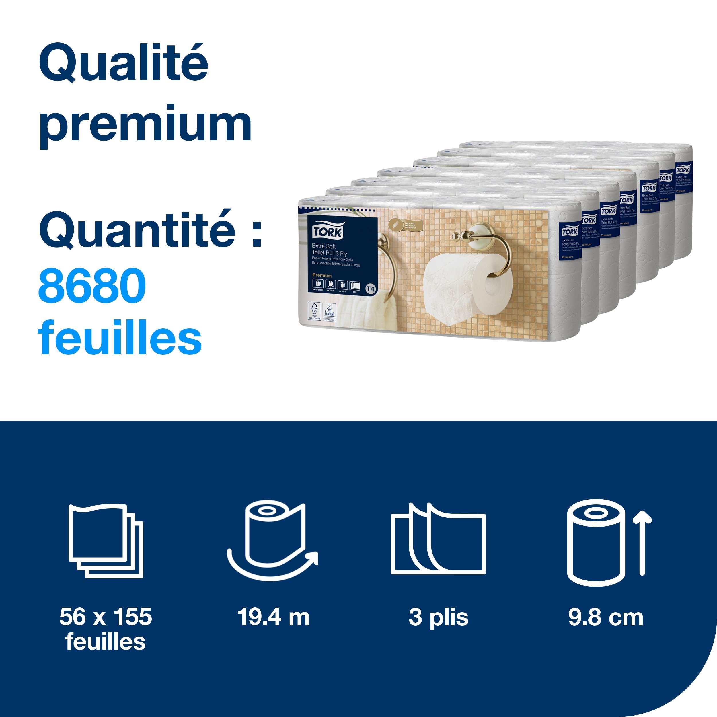 Tork Papier toilette rouleau traditionnel extra doux – 3 plis