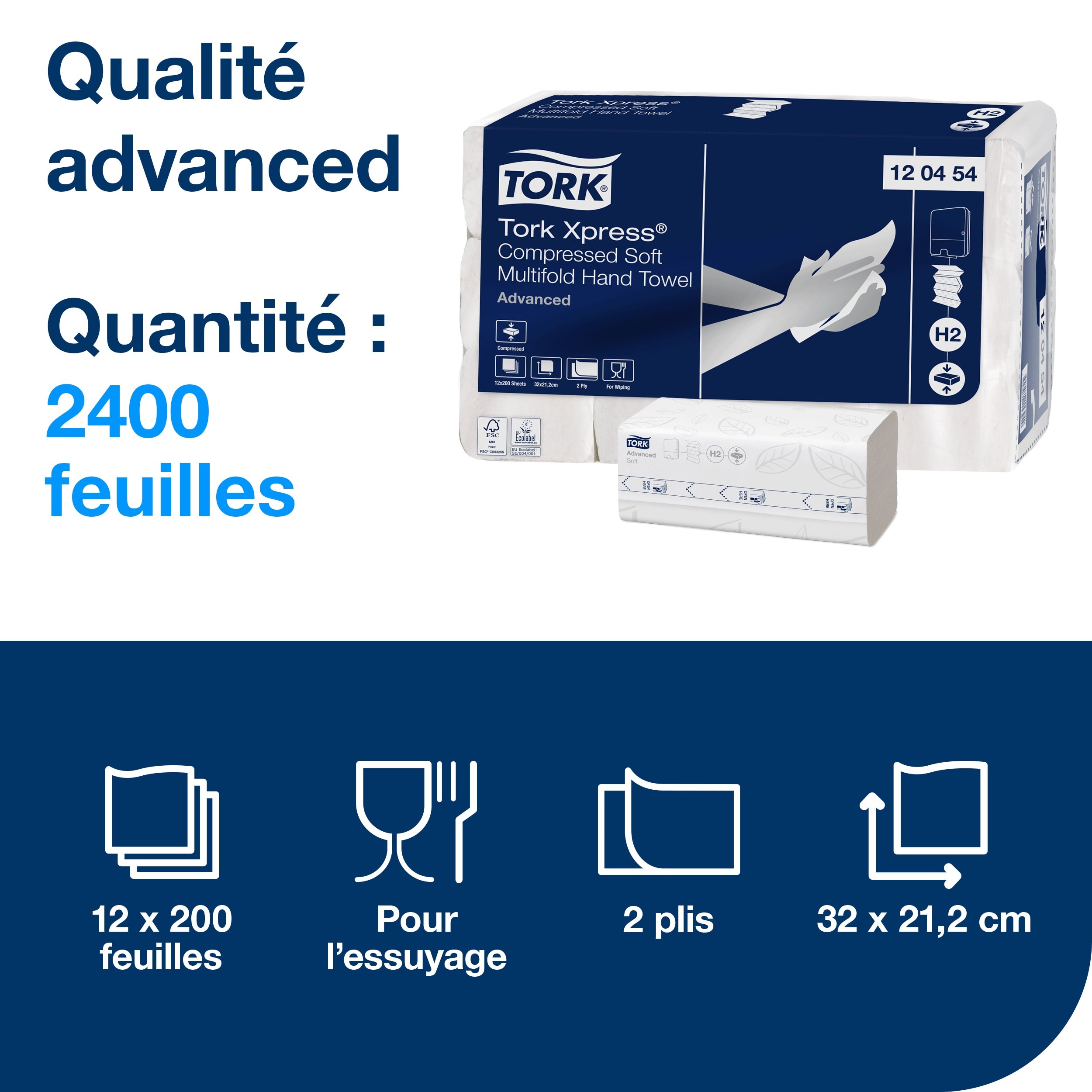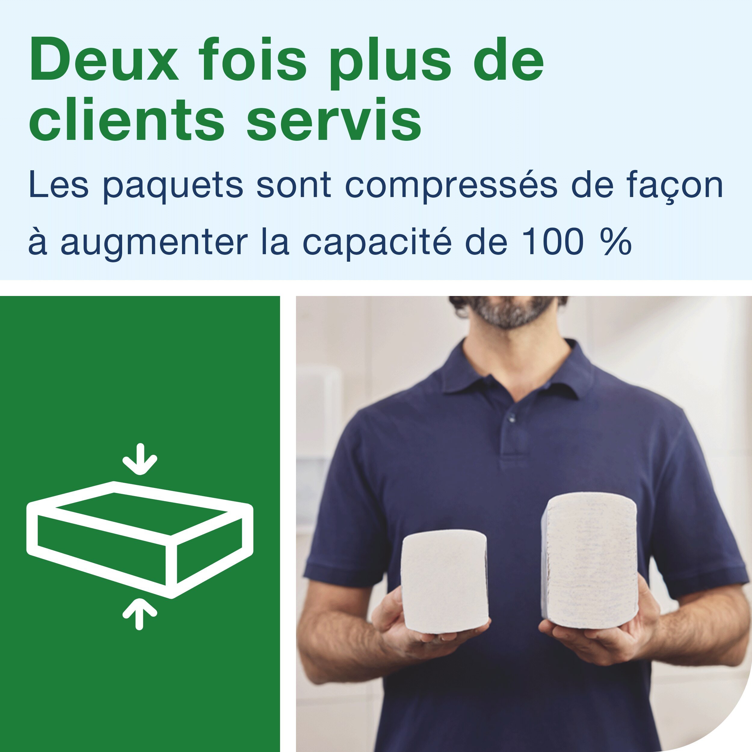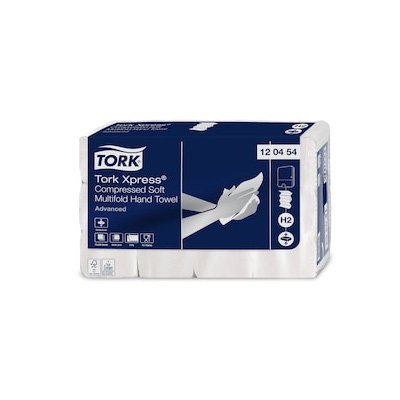• Maximisez l’espace : utilisez ces essuie-mains en papier compressés avec le distributeur de serviettes Tork Xpress® dans les sanitaires à fréquentation faible à moyenne