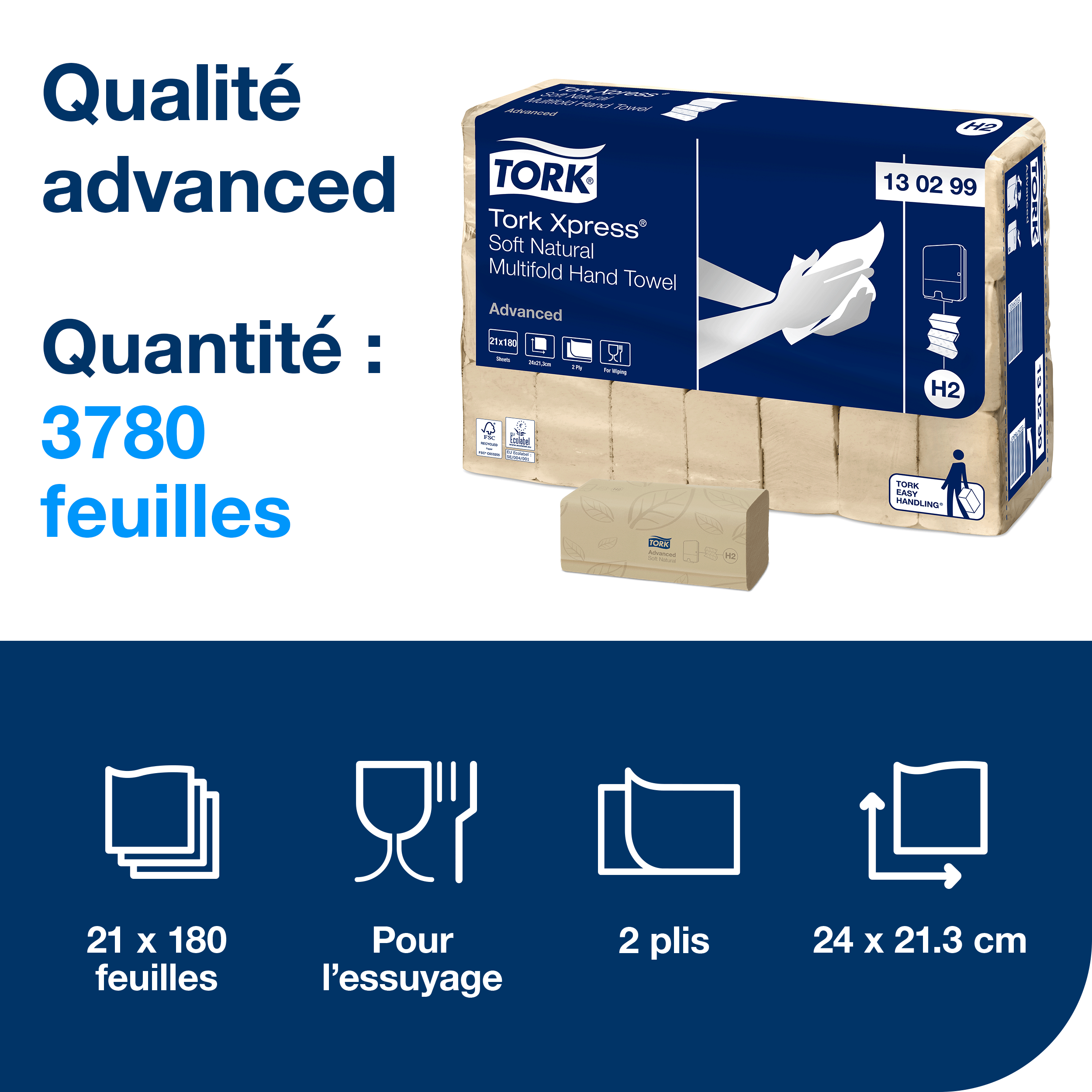 Offrez un séchage des mains et un confort supérieurs à vos clients avec les essuie-mains interfoliés doux Tork Xpress® Advanced qui procurent une meilleure sensation pour les mains. Ces essuie-mains sont adaptés au Tork Xpress® Distributeur pour Essuie-mains interfoliés pour les sanitaires à fréquentation moyenne. Ils s’adaptent parfaitement aux petits espaces et offrent confort et hygiène à vos clients. Le produit en papier est fabriqué en fibres 100 % recyclées.