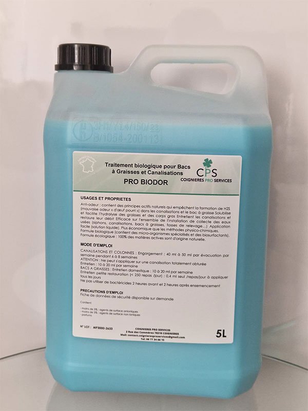(mauvaise odeur « d'œuf pourri ») dans les canalisations et le bac à graisse Solubilise et facilite l'hydrolyse des graisses et des corps gras